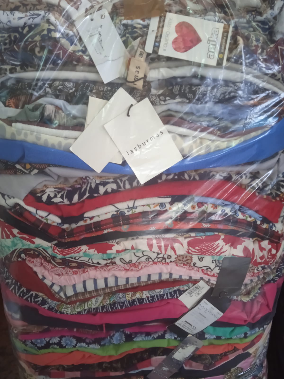 modern and current second-hand brand clothing, of maximum 3 to 5 seasons, from commercially known brands, such as those of the group inditex: zara, h&m, pinkie, oasis, gloria ortiz, kling, kookai, mango, mari paz, salsa, roxy, tintoretto, trucco, vero moda, aldo, almatrichi, benetton, blanco, cortefiel, formarina, max mara, misako, nelly, oasis, pepa loves, bershka, stradivarius, pull & bear, massimo dutti, uterque , marcas de el corte ingles, como sfera, gloria ortiz, zendra, hominem, formula joven o elogy, and all used clothing from other commercially known brands, such as levis,etc…the garments are carefully selected and pass a quality control.