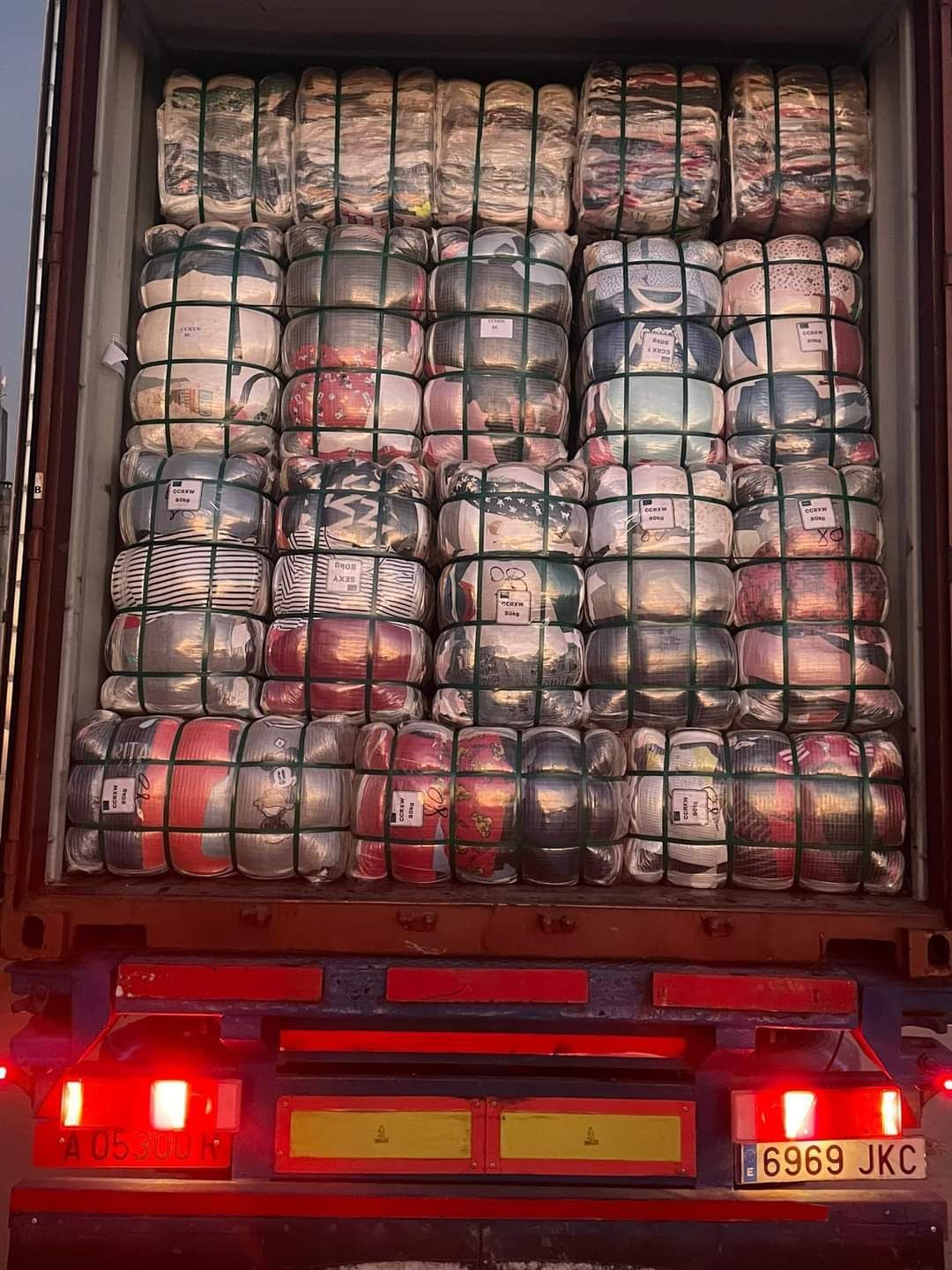ofrecemos diferentes tipos de empaquetados para el transporte a cualquier parte del mundo: en sacos de plástico, balas de 45, 55, 60 y 80kg, ropa usada envueltas en rafia de plástico muy resistente e impermeable que evita que el contenido de dichas balas se estropee.